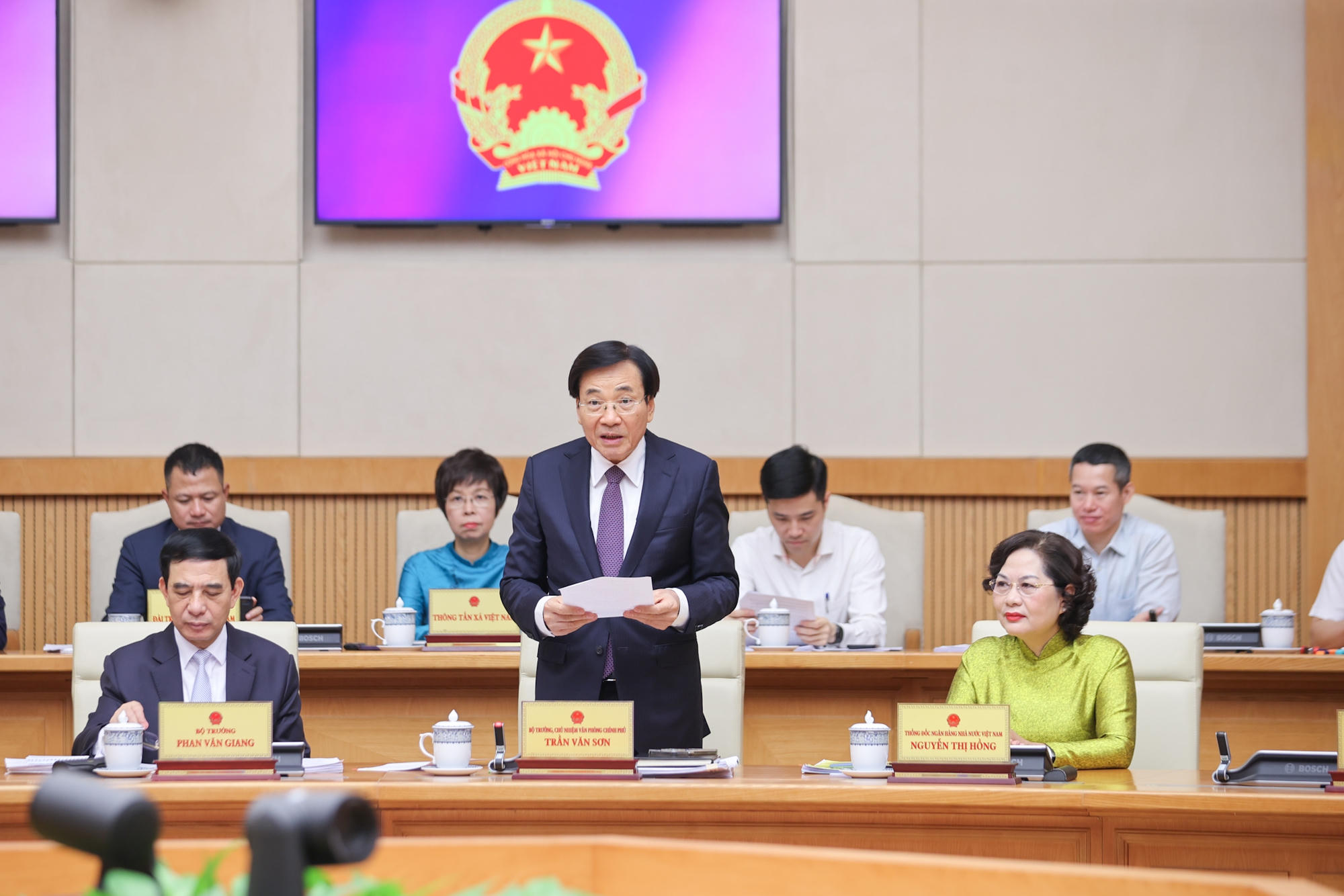 Bộ trưởng, Chủ nhiệm Văn phòng chính phủ Trần Văn Sơn phát biểu tại phiên họp - Ảnh: VGP/Nhật Bắc |