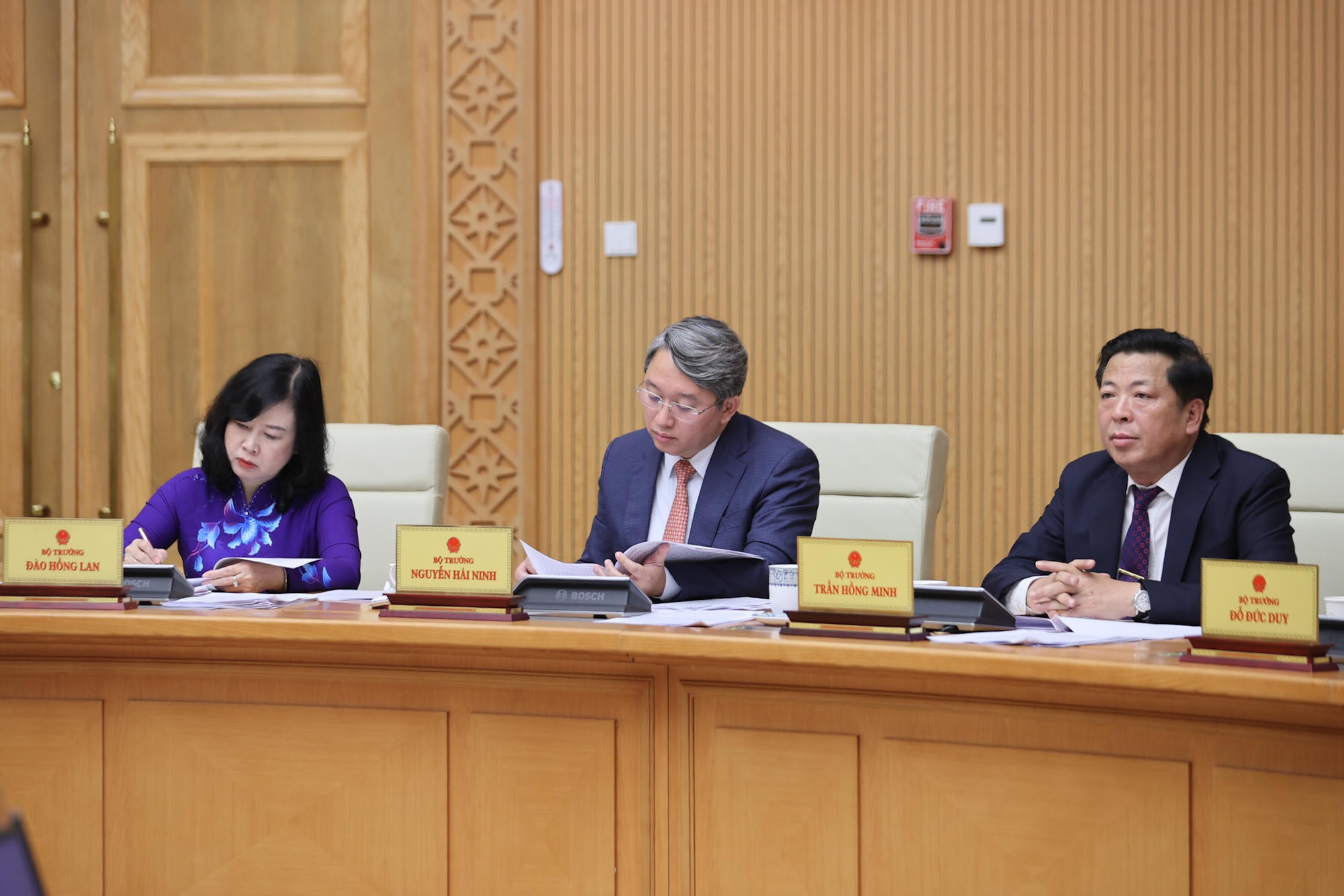 Các bộ trưởng, thủ trưởng các cơ quan ngang bộ dự và phát biểu tại phiên họp - Ảnh: VGP/Nhật Bắc |