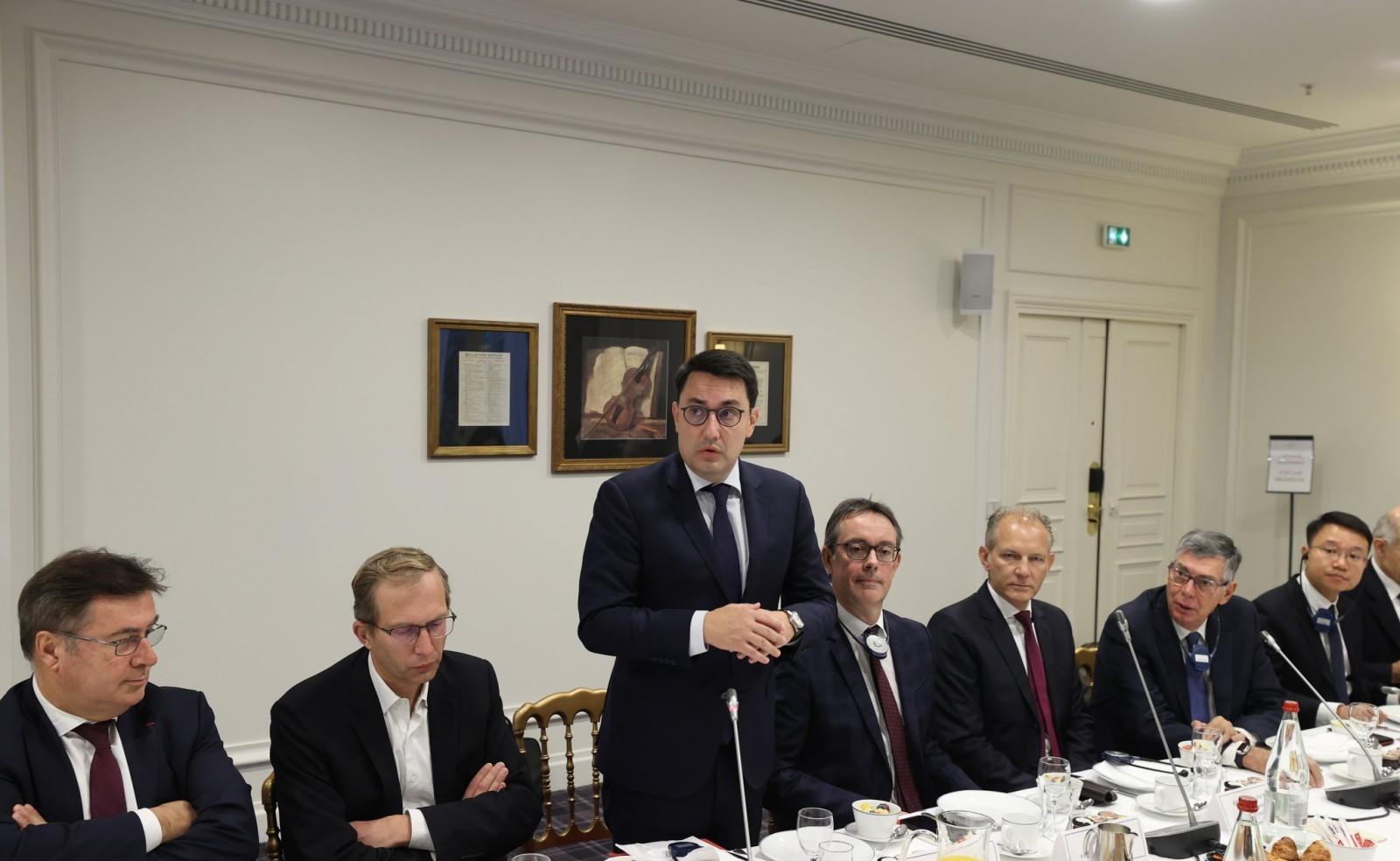 Tiếp đó, tại buổi ăn sáng làm việc với Chủ tịch Eurocham tại Việt Nam Alain Cany và lãnh đạo nhiều tập đoàn lớn của Pháp, Thủ tướng và lãnh đạo các doanh nghiệp đã trao đổi trên tinh thần cởi mở, thẳng thắn về những cơ hội và quá trình hoạt động tại Việt Nam trên các lĩnh vực như giao thông vận tải, logistics, năng lượng, công nghệ cao, tự động hóa, chuyển đổi số...