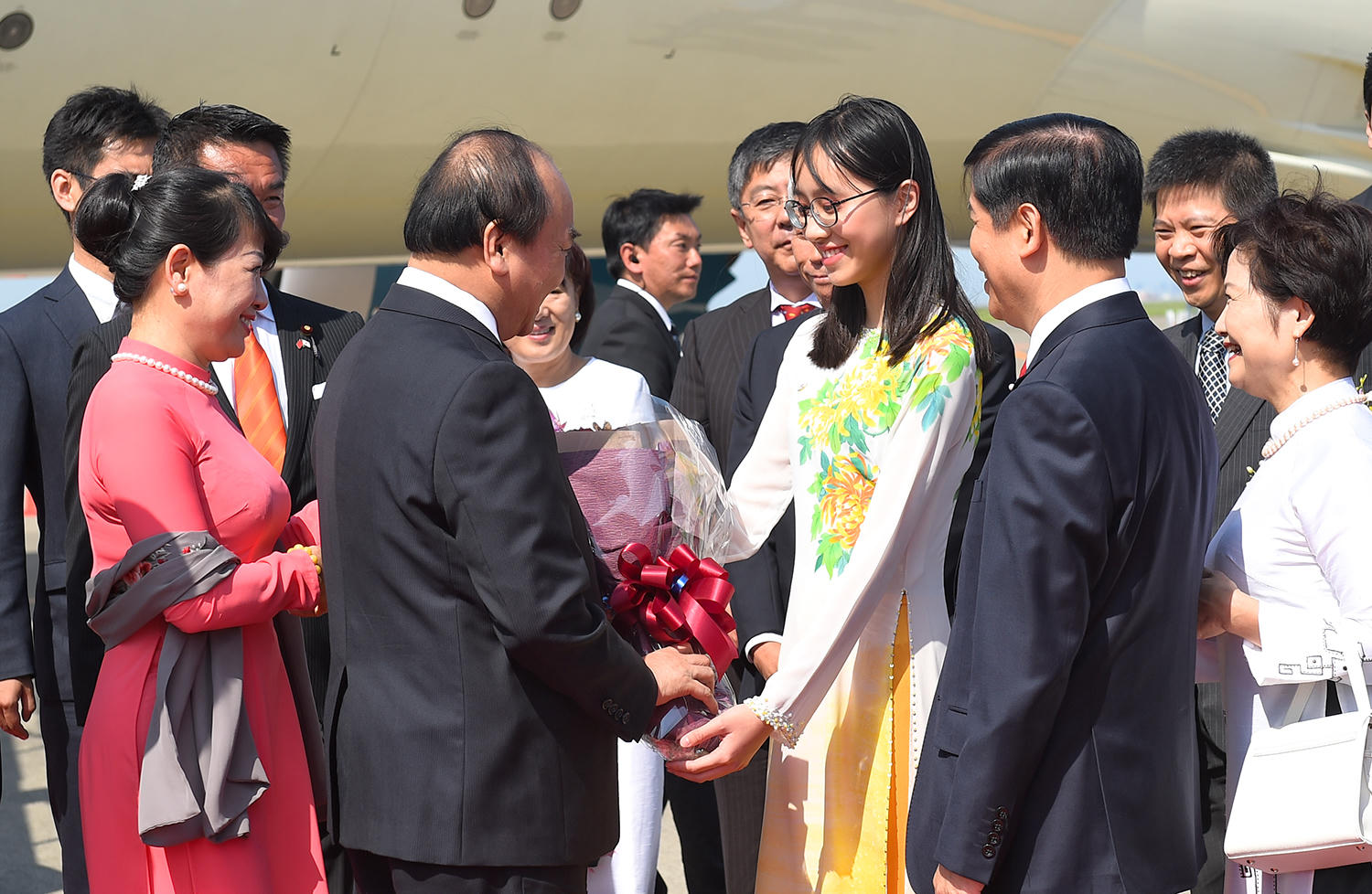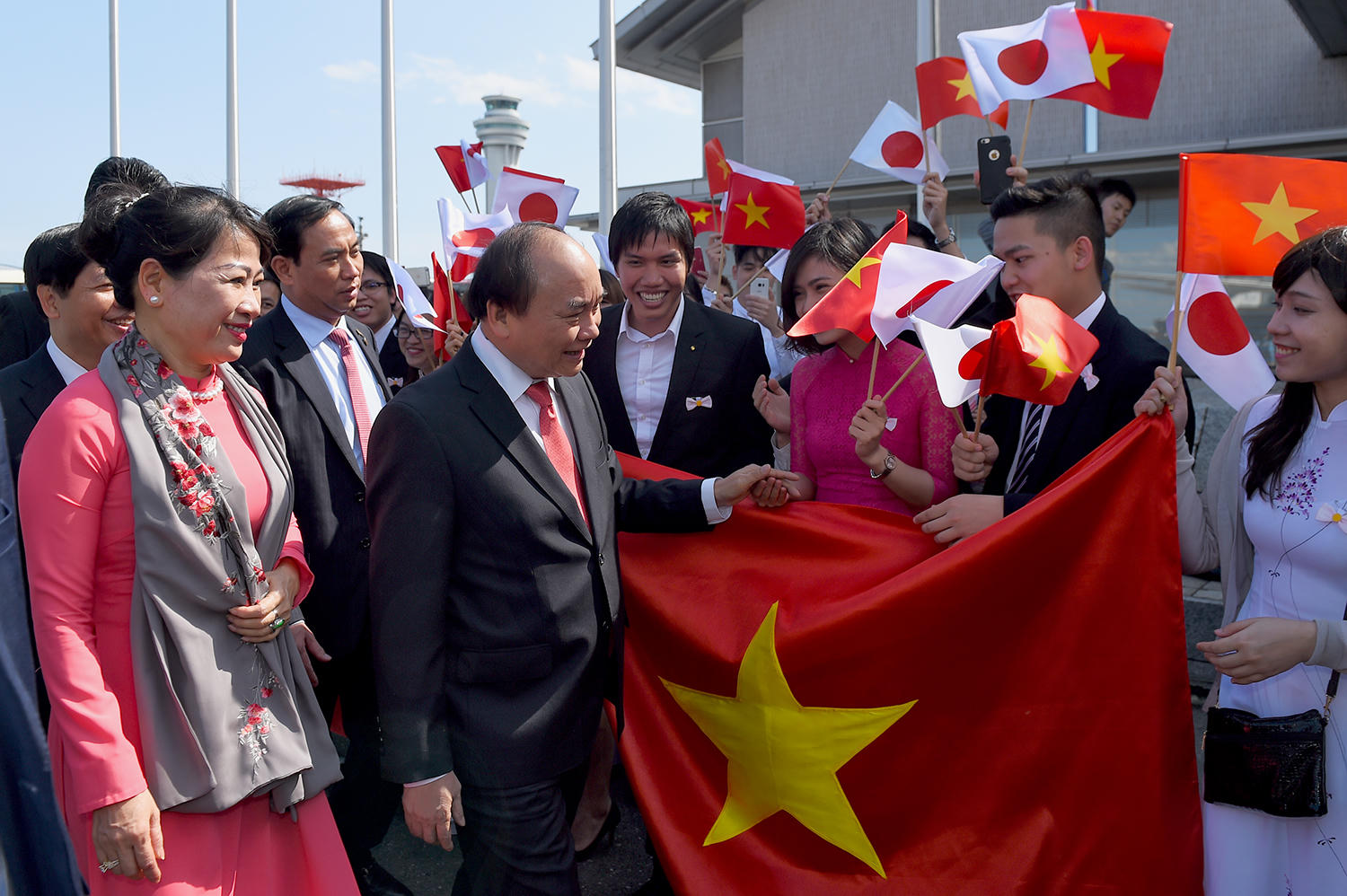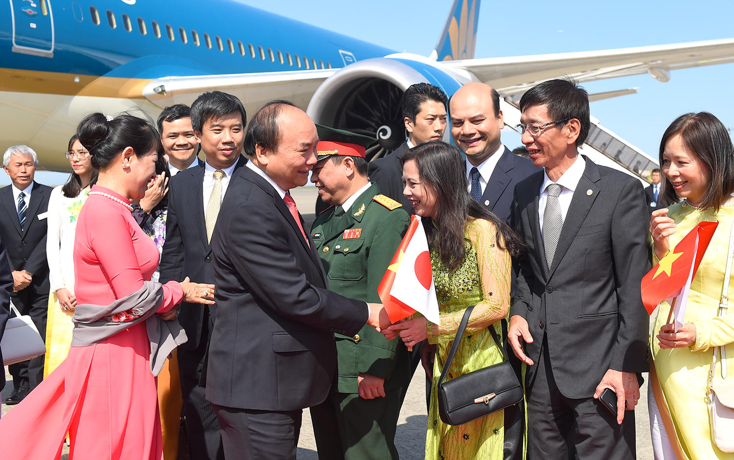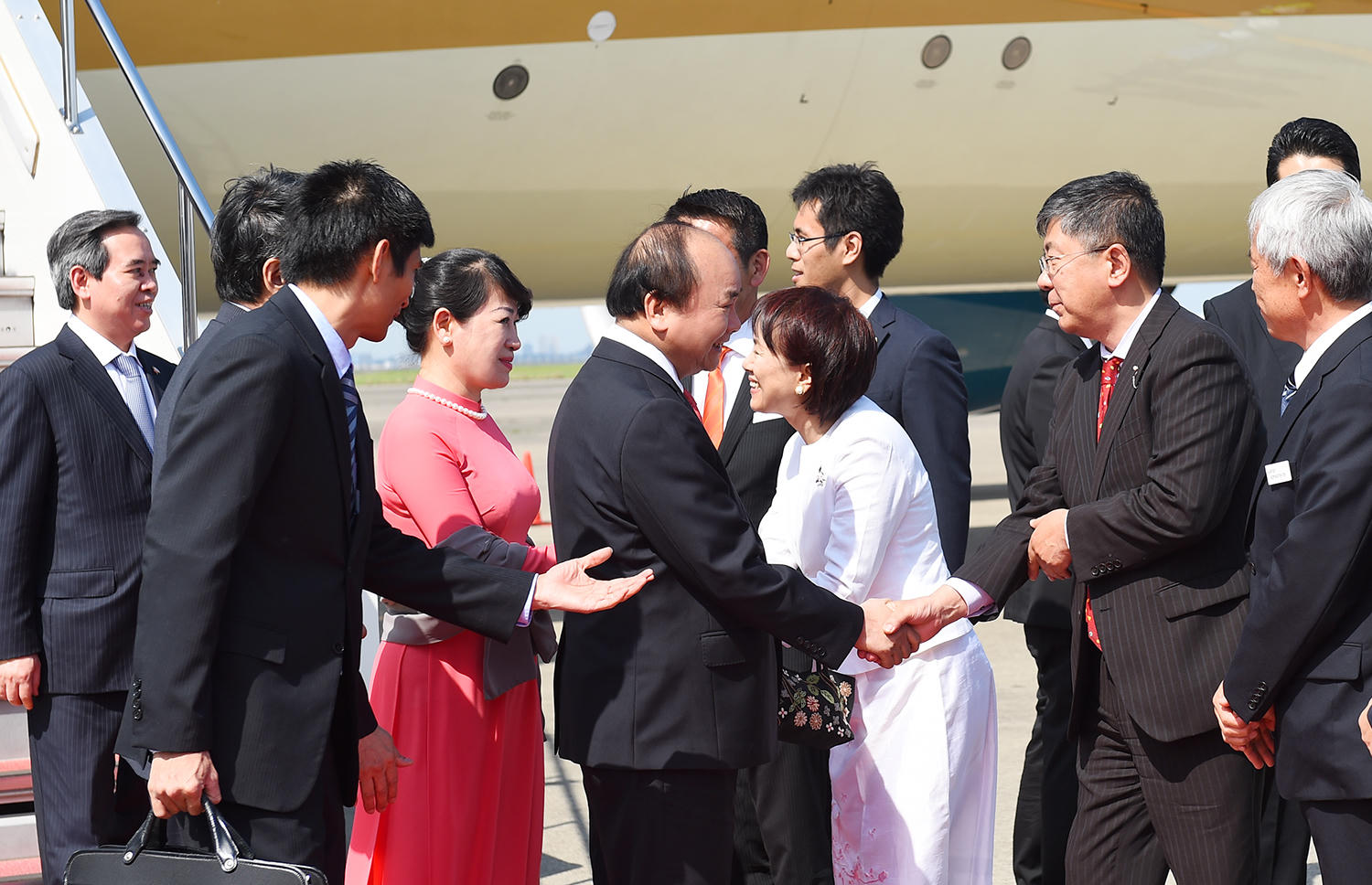 Đón Thủ tướng, Phu nhân và đoàn tại sân bay có Đại sứ Nhật Bản tại Việt Nam Kunio Umeda và Phu nhân; Nghị sỹ, Thứ trưởng Bộ Ngoại giao Nhật Bản Kiyoshi Odawara và cán bộ Bộ Ngoại giao Nhật Bản; Đại sứ Việt Nam tại Nhật Bản Nguyễn Quốc Cường và Phu nhân, cán bộ, nhân viên Đại sứ quán và cộng đồng người Việt Nam tại Nhật Bản.