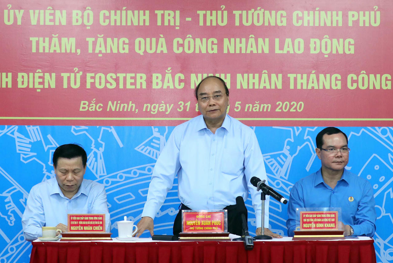 Thủ tướng bày tỏ vui mừng trước nguyện vọng của công nhân về nâng cao tay nghề, rèn luyện kỹ năng, từ đó, tăng thu nhập. “Chúng ta làm hết sức mình để bảo đảm sức khỏe cho người lao động, duy trì sản xuất, tiếp tục phối hợp giảm chi phí”, Thủ tướng nói và đề nghị tỉnh Bắc Ninh dành nguồn lực, có cơ chế thuận lợi để xây dựng nhà ở cho công nhân khi mà công nhân lương tháng 6-7 triệu đồng mà tiền thuê nhà đã hơn 1 triệu/tháng. Đây là vấn đề bức xúc đối với người lao động vì “họ an cư mới lạc nghiệp”. Thủ tướng khẳng định Trung ương sẽ cùng tỉnh và công đoàn lo vấn đề nhà ở cho công nhân.