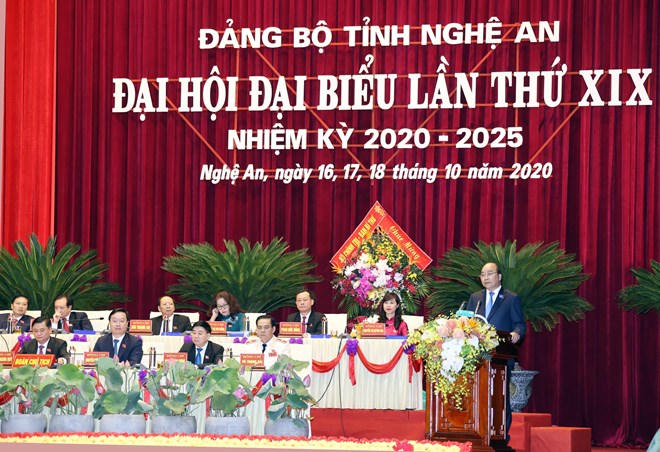 Phát biểu chỉ đạo Đại hội, Thủ tướng Chính phủ Nguyễn Xuân Phúc chúc mừng và biểu dương những thành tựu mà Đảng bộ, chính quyền và nhân dân tỉnh Nghệ An đã đạt được trong nhiệm kỳ vừa qua, tạo nền tảng vững chắc và điều kiện thuận lợi để bước vào thời kỳ phát triển mới. Những thành tựu đó là kết quả của quá trình phấn đấu liên tục, bền bỉ qua nhiều nhiệm kỳ, thể hiện sinh động ý Đảng, lòng dân trong quyết tâm thực hiện các mục tiêu đã xác định.