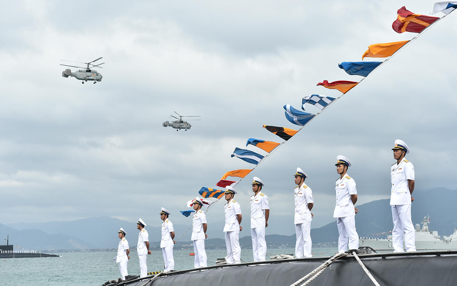 Cũng tại buổi lễ, Thủ tướng yêu cầu lực lượng Hải quân tiếp tục nâng cao nhận thức về tình hình, nhiệm vụ, về quan điểm của Đảng, Nhà nước ta trong vấn đề giải quyết tranh chấp trên Biển Đông. Khẳng định nhất quán và rõ ràng về chủ quyền của Việt Nam đối với hai quần đảo Hoàng Sa và Trường Sa. Bằng thiện chí và những nỗ lực của mình, chúng ta kiên trì chủ trương giải quyết các tranh chấp ở Biển Đông bằng các biện pháp hòa bình trên cơ sở luật pháp quốc tế, Công ước quốc tế về Luật Biển 1982, Tuyên bố về cách ứng xử của các bên ở Biển Đông (DOC), Luật Biển Việt Nam năm 1982 và hướng tới xây dựng Bộ Quy tắc ứng xử của các bên trên Biển Đông (COC), để Biển Đông thực sự là vùng biển hòa bình, ổn định, hữu nghị và phát triển, vì lợi ích của tất cả các nước trong khu vực, vì an ninh chung của khu vực và trên toàn thế giới.