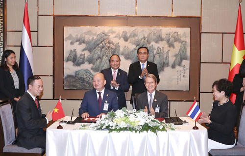 Tại cuộc gặp, hai Thủ tướng bày tỏ hài lòng về sự phát triển tốt đẹp của quan hệ Đối tác chiến lược Việt Nam-Thái Lan trên mọi lĩnh vực, đặc biệt là kinh tế, thương mại và đầu tư. Hai bên nhất trí thúc đẩy triển khai các cơ chế hợp tác quan trọng giữa hai nước trong năm 2018, đặc biệt là cuộc họp Nội các chung lần thứtư, các cuộc họp Ủy ban hỗn hợp về Hợp tác song phương và Ủy ban hỗn hợp Thương mại Việt Nam-Thái Lan lần thứ ba.