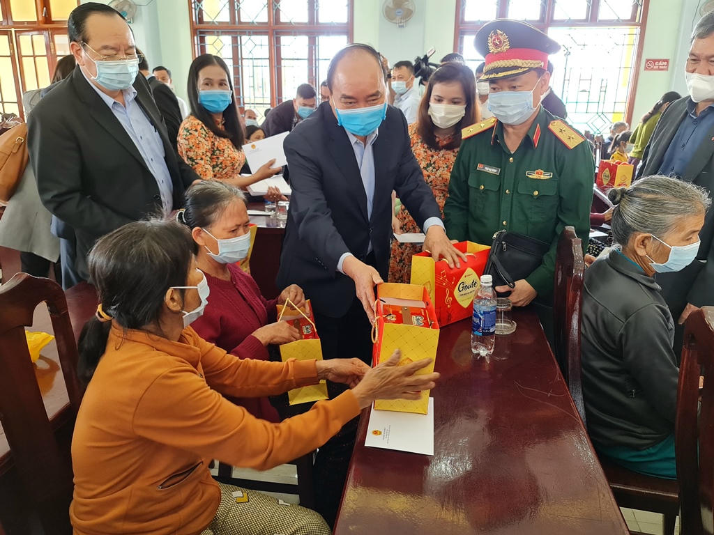 Nói chuyện với các vị lão thành, người có công với cách mạng, Thủ tướng nhấn mạnh đến chính sách của Đảng, Nhà nước chăm lo Tết cho nhân dân và đề nghị các đồng chí Bí thư Đảng ủy, Chủ tịch UBND, cán bộ các xã, các huyện quan tâm chăm lo Tết bà con trên tinh thần để mỗi nhà, mỗi người đều có Tết, nhất là những gia đình neo đơn, gia đình khó khăn, gia đình đồng bào dân tộc thiểu số...