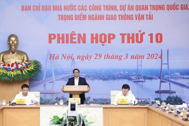 Kết luận cuộc họp, Thủ tướng Phạm Minh Chính nêu rõ, sau cuộc họp lần thứ 9 Ban Chỉ đạo Nhà nước các công trình, dự án quan trọng quốc gia, trọng điểm ngành GTVT vào ngày 16/2/2024, các bộ, ngành và địa phương, chủ đầu tư, nhà thầu tư vấn, xây lắp và nhân dân những nơi có dự án đi qua đã chủ động, tích cực, phối hợp triển khai tốt các giải pháp, nhiệm vụ đã đề ra với tinh thần "chỉ bàn làm, không bàn lùi"; các chủ đầu tư, nhà thầu, người lao động tiếp tục nỗ lực tổ chức thi công với quyết tâm "vượt nắng, thắng mưa", "ăn tranh thủ ngủ khẩn trương", thi công "3 ca 4 kíp", "làm việc xuyên lễ Tết, xuyên ngày nghỉ" để đẩy nhanh tiến độ thi công công trình, đạt kết quả rất đáng khích lệ với tinh thần chung tay xây dựng hệ thống hạ tầng giao thông hiện đại, đồng bộ