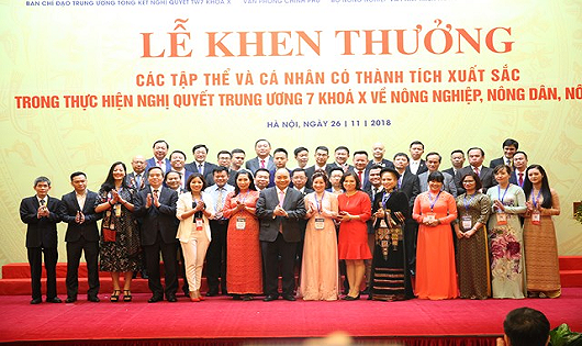 Trước đó, ngày 26/11, tại Lễ Khen thưởng các tập thể, cá nhân có thành tích xuất sắc trong thực hiện Nghị quyết TW 7 khóa X về nông nghiệp, nông dân, nông thôn, Thủ tướng Nguyễn Xuân Phúc đã khẳng định, thành tựu sau 10 năm thực hiện Nghị quyết TW 7 khóa X là rất trân trọng và đáng tự hào, góp phần rất quan trọng duy trì sự ổn định và phát triển kinh tế - xã hội.