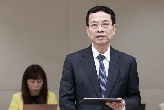 Bộ trưởng Bộ Thông tin và Truyền thông Nguyễn Mạnh Hùng phát biểu tại Hội nghị - Ảnh: VGP/Nhật Bắc