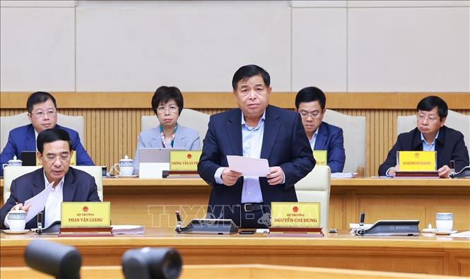 Bộ trưởng Bộ Kế hoạch và Đầu tư Nguyễn Chí Dũng báo cáo Tình hình kinh tế - xã hội tháng 11 và 11 tháng năm 2024. Ảnh: Dương Giang/TTXVN.