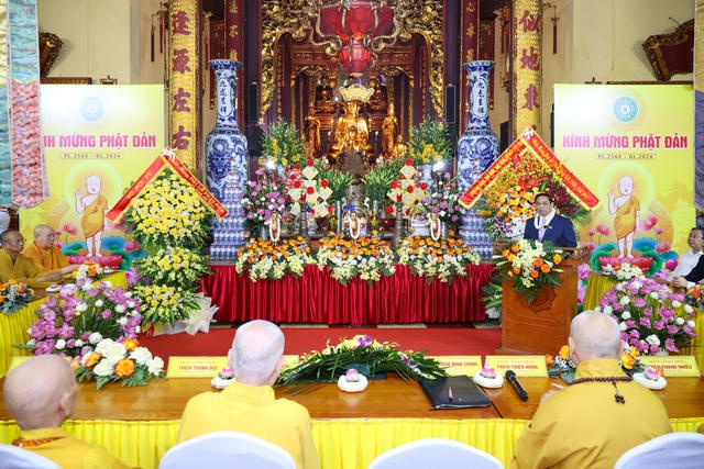 Thay mặt Lãnh đạo Đảng, Nhà nước và với tình cảm cá nhân, Thủ tướng trân trọng gửi tới chư tôn giáo phẩm Giáo hội Phật giáo Việt Nam, tăng ni, đồng bào Phật tử trong và ngoài nước, cùng các đại biểu lời chúc mừng tốt đẹp nhất; chúc Đại lễ Phật đản Phật lịch 2568 - Dương lịch 2024 của Giáo hội Phật giáo Việt Nam thành tựu viên mãn.