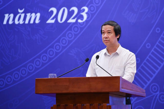 Bộ trưởng Bộ Giáo dục và Đào tạo Nguyễn Kim Sơn báo cáo tổng kết năm học 2022-2023 - Ảnh: VGP/Nhật Bắc