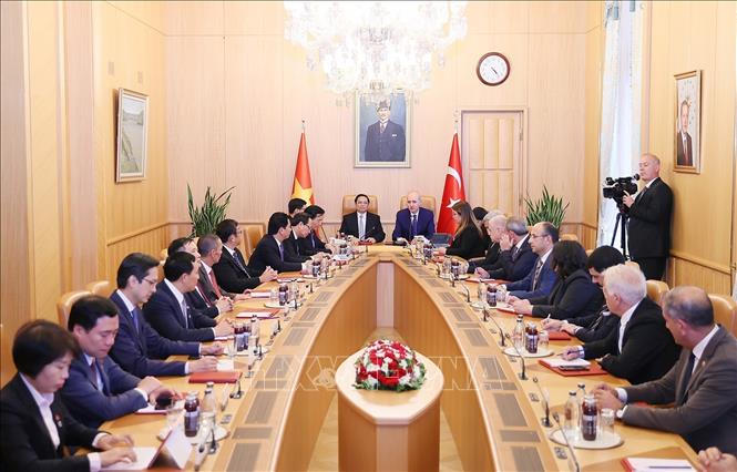 (PLVN) - Theo đặc phái viên TTXVN, trong chương trình thăm chính thức Thổ Nhĩ Kỳ, chiều 29/11 (giờ địa phương), Thủ tướng Chính phủ Phạm Minh Chính đã gặp Chủ tịch Quốc hội Thổ Nhĩ Kỳ Numan Kurtulmus.