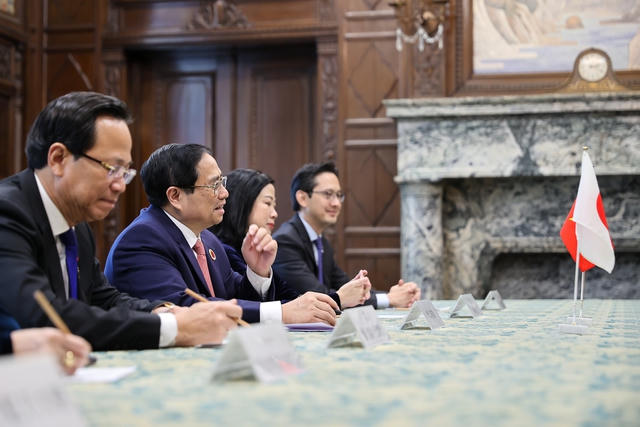 Thủ tướng Phạm Minh Chính bày tỏ vui mừng trước sự phát triển tốt đẹp của quan hệ hợp tác Việt Nam - Nhật Bản - Ảnh: VGP/Nhật Bắc