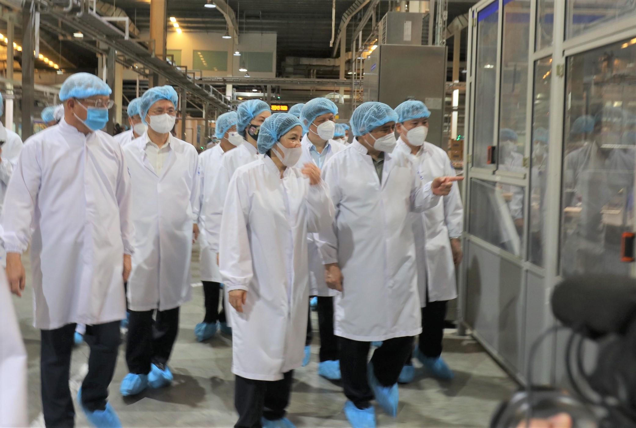Ngay sau khi kiểm tra công tác phòng, chống dịch tại Bệnh viện đa khoa tỉnh Bình Dương. Đoàn công tác của Chính phủ tiếp tục trực tiếp đến kiểm tra tình hình hoạt động sản xuất, phòng, chống dịch bệnh COVID-19 tại Công ty Cổ phần Sữa Việt Nam Vinamilk (khu công nghiệp Mỹ Phước 2, thị xã Bến Cát).