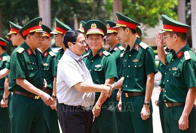| Thủ tướng Phạm Minh Chính đến thăm cán bộ, chiến sĩ Bộ Chỉ huy Quân sự tỉnh Đắk Lắk. Ảnh: Dương Giang/TTXVN |