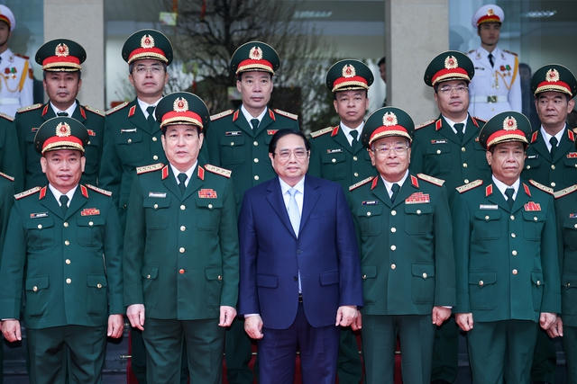 Thủ tướng chụp ảnh lưu niệm khi thăm, chúc Tết, kiểm tra công tác sẵn sàng chiến đấu Tổng cục II - Ảnh: VGP/Nhật Bắc