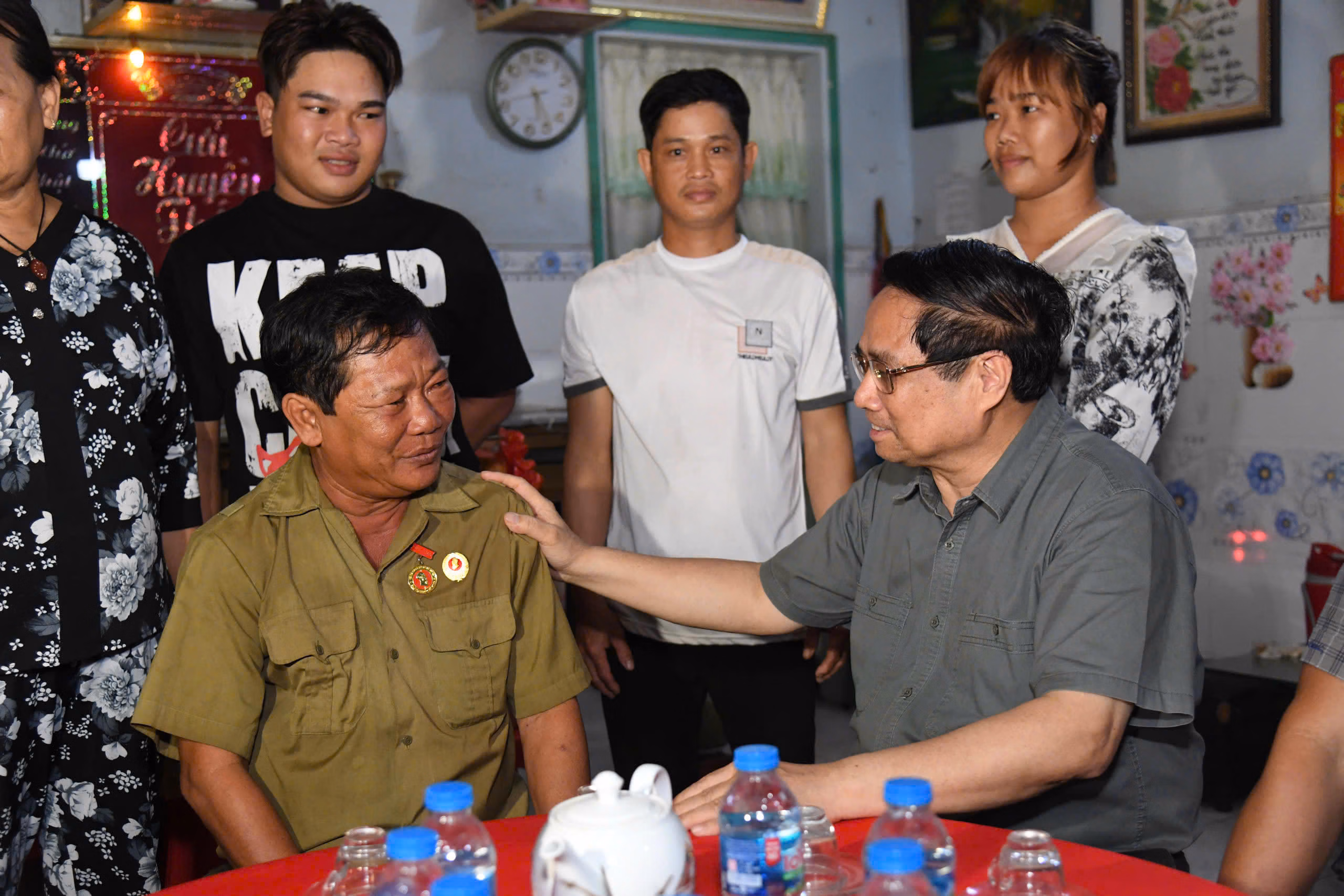 Sau đó, Thủ tướng Phạm Minh Chính đã tới thăm hỏi và tặng quà cho bà Nguyễn Thị Có (SN 1940, ngụ xã Bình Mỹ, tỉnh An Giang). Tại đây, Thủ tướng đã ân cần tìm hiểu về cuộc sống gia đình bà Có, đồng thời bày tỏ mong muốn bà sẽ tiếp tục phát huy truyền thống cách mạng của gia đình, trở thành tấm gương sáng cho thế hệ con cháu và tích cực đóng góp vào công việc địa phương. Cùng với đó, Thủ tướng yêu cầu chính quyền địa phương cần đặc biệt quan tâm đến các gia đình có công với cách mạng.