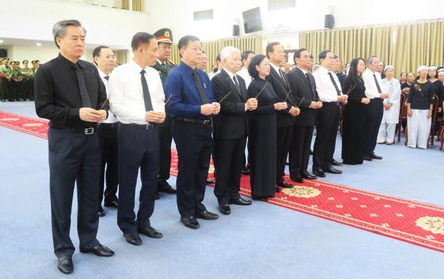 Đoàn Ban Chấp hành Trung ương Đảng do Ủy viên Bộ Chính trị, Thường trực Ban Bí thư, Trưởng ban Tổ chức Trung ương Trương Thị Mai dẫn đầu, vào viếng đồng chí Lê Phước Thọ và chia buồn cùng gia quyến - Ảnh: TTXVN