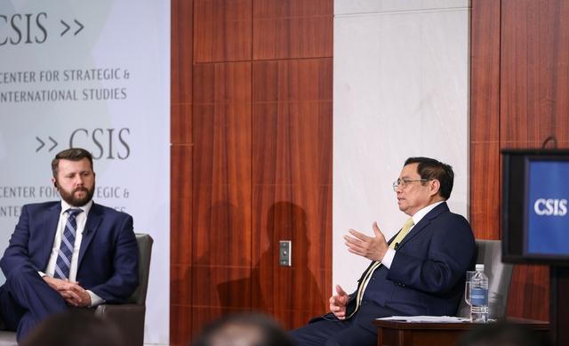 Thủ tướng Phạm Minh Chính phát biểu tại Trung tâm nghiên cứu Chiến lược và Quốc tế Hoa Kỳ (CSIS) - Ảnh: VGP/Nhật Bắc