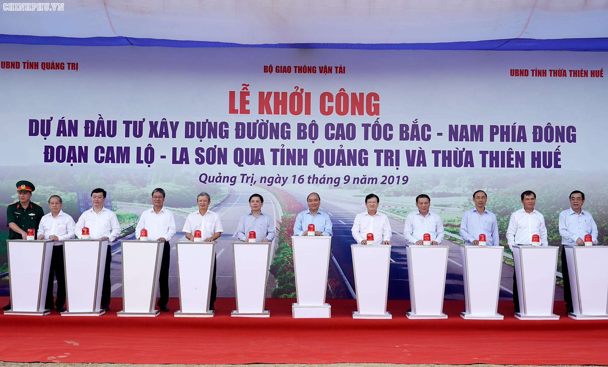 (PLVN) - Hôm nay (16/9), tại Quảng Trị, Thủ tướng Nguyễn Xuân Phúc đã dự, phát lệnh khởi công xây dựng dự án tuyến cao tốc Cam Lộ - La Sơn, dự án đầu tiên trong 11 dự án thành phần của cao tốc Bắc - Nam phía Đông.