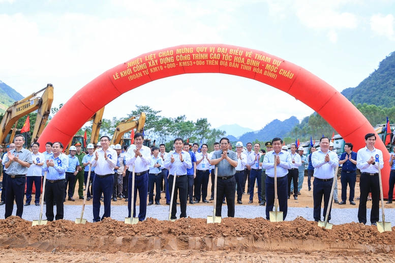 Thủ tướng Phạm Minh Chính dự lễ khởi công tuyến cao tốc Hoà Bình - Mộc Châu (đoạn từ Km19 đến Km53 trên địa bàn tỉnh Hòa Bình) - Ảnh: VGP/Nhật Bắc |