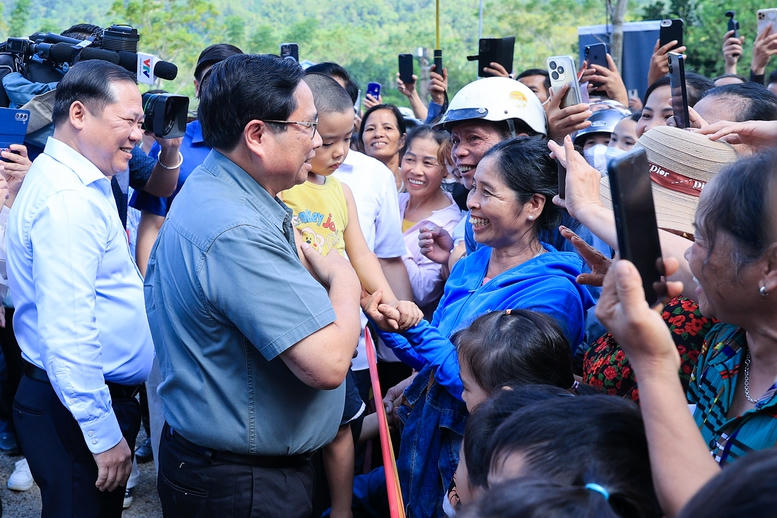 Thủ tướng Phạm Minh Chính thăm hỏi bà con nhân dân huyện Đà Bắc - Ảnh: VGP/Nhật Bắc |