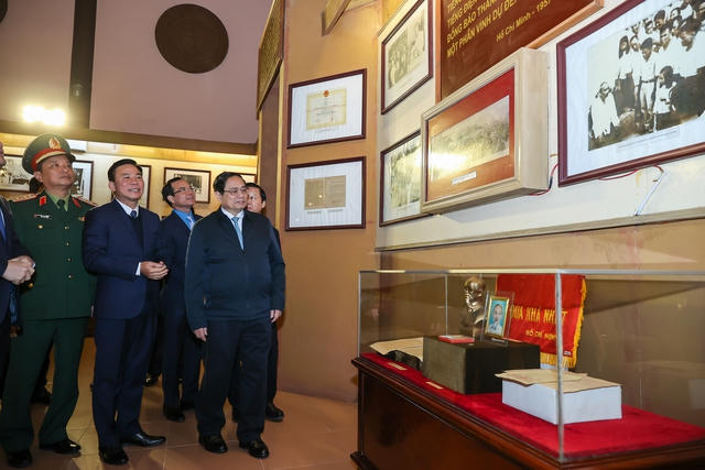 Thủ tướng Chính phủ và đoàn công tác thăm không gian trưng bày tại Khu văn hóa tưởng niệm Chủ tịch Hồ Chí Minh ở thành phố Thanh Hóa - Ảnh: VGP/Nhật Bắc