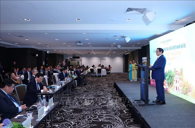 Thủ tướng Phạm Minh Chính phát biểu tại Lễ kỷ niệm 30 năm mở đường bay Việt Nam - Australia của Vietnam Airlines. Ảnh: Dương Giang/TTXVN |