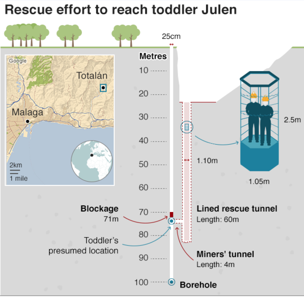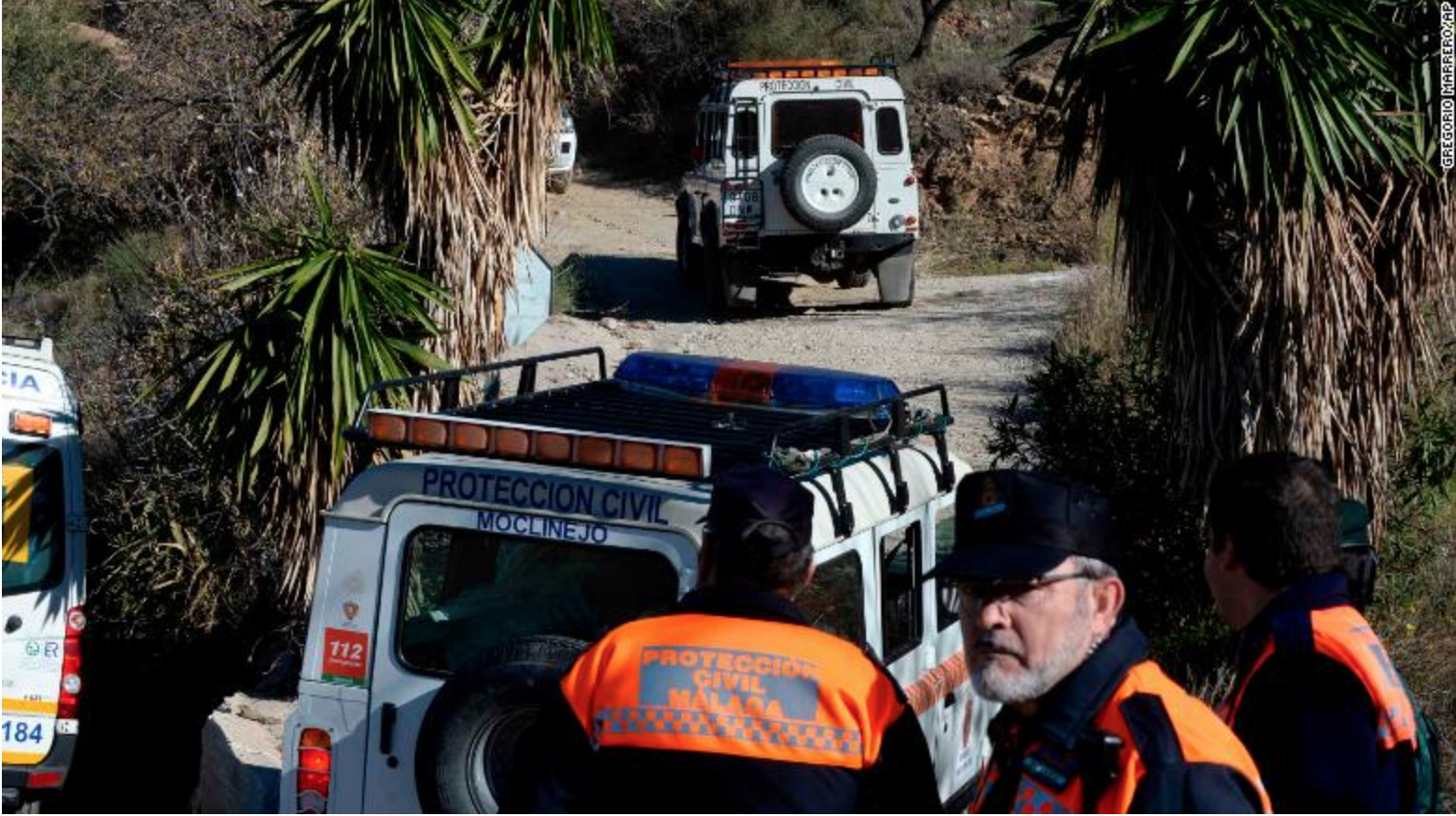 Julen Roselló, 2 tuổi, ở nông thôn cùng gia đình gần làng Totalán ở tỉnh Málaga. Vào ngày 13/1 cậu bé vấp ngã xuống chiếc giếng đường kính 9 inch (23 cm) khi cha mẹ đang chuẩn bị bữa trưa.