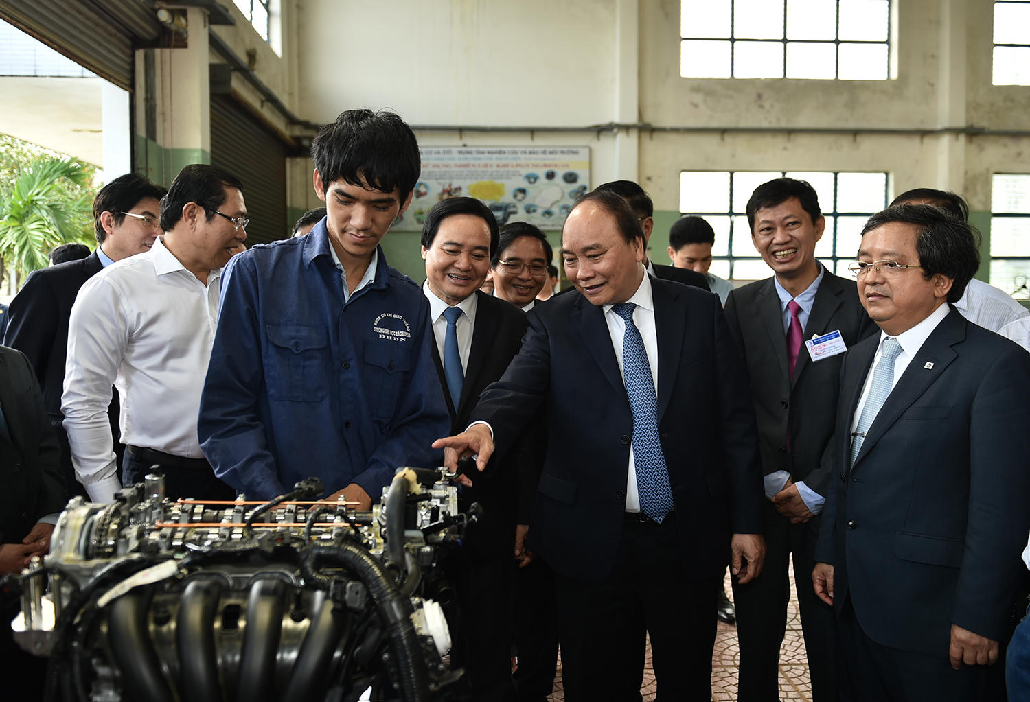 | Thủ tướng thăm khu thực hành cơ khí của Đại học Bách khoa thuộc Đại học Đà Nẵng. Ảnh: VGP/Quang Hiếu |