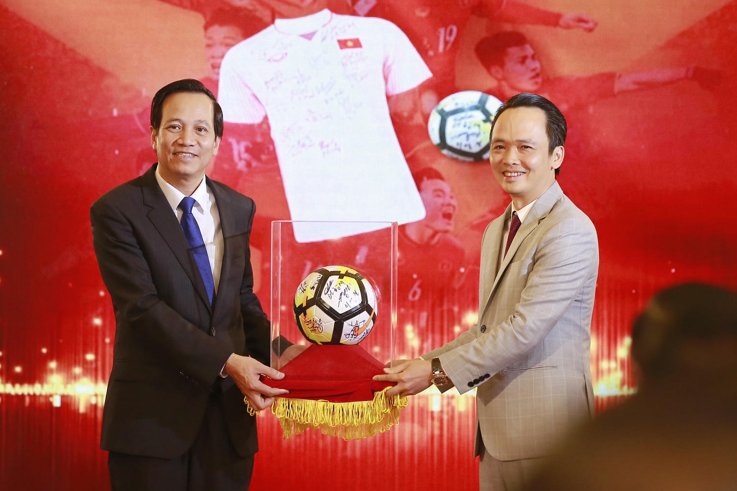 Sáng ngày 11/3, Lễ trao quà tặng của Thủ tướng Chính phủ cho 20 huyện nghèo thông qua đấu giá bóng và áo của đội tuyển U23 Việt Nam đã được tổ chức tại Văn phòng Chính phủ. Sự kiện có sự tham dự của Thủ tướng Chính phủ Nguyễn Xuân Phúc, lãnh đạo các Bộ Lao động - Thương binh và Xã hội, Bộ Thông tin và Truyền thông, Bộ Văn hóa, Thể thao và Du lịch, Ủy ban Trung ương Mặt trận Tổ quốc Việt Nam, Văn phòng Chính phủ, Liên đoàn Bóng đá Việt Nam, Chủ tịch Tập đoàn FLC, thành viên Đội tuyển U23 Việt Nam và các đơn vị báo chí, truyền hình cả nước.