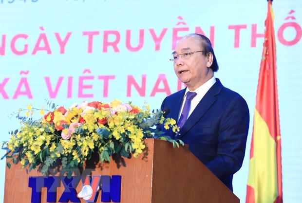 Phát biểu tại buổi Lễ, Thủ tướng Chính phủ Nguyễn Xuân Phúc chúc mừng, chia vui với các thế hệ cán bộ, nhân viên của TTXVN qua các thời kỳ; ghi nhận, biểu dương những nỗ lực, thành tích của các thế hệ lãnh đạo, cán bộ, phóng viên, kỹ thuật viên, nhân viên của TTXVN qua các thời kỳ đã đóng góp to lớn cho công cuộc xây dựng, bảo vệ Tổ quốc; đồng thời bày tỏ lòng thành kính, tri ân với gần 260 nhà báo liệt sỹ thông tấn (chiếm 2/3 số nhà báo liệt sỹ của cả nước) đã hy sinh anh dũng.