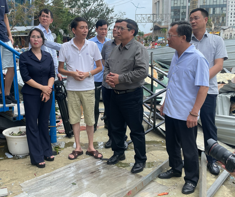 Chiều 8/9, Thủ tướng Phạm Minh Chính đi kiểm tra tình hình thiệt hại, chỉ đạo triển khai các biện pháp cấp bách khắc phục hậu quả cơn bão số 3 tại Quảng Ninh và Hải Phòng - nơi bão đổ bộ với sức gió mạnh nhất, gây nhiều thiệt hại nhất theo thống kê tới sáng 8/9.