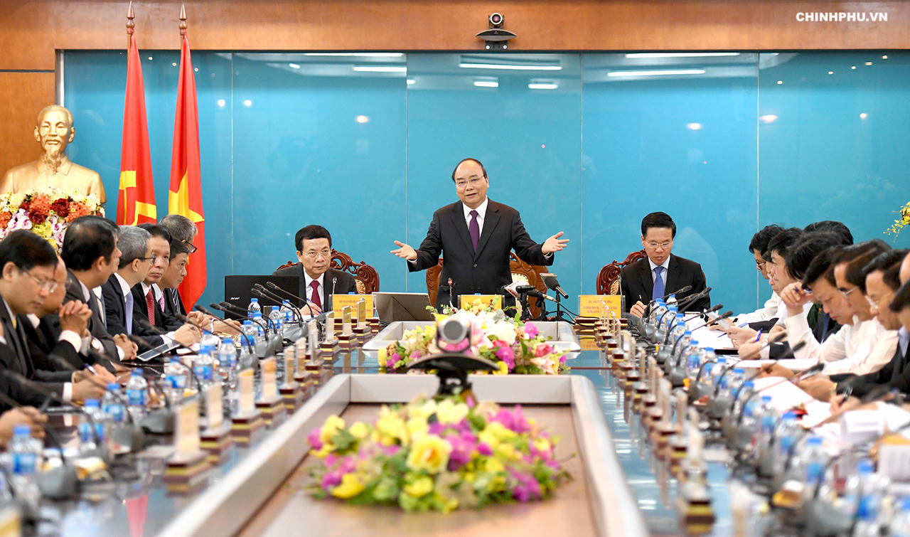 Sau khi lắng nghe các ý kiến phát biểu về tình hình thời gian qua và giải pháp cho sự phát triển của ngành TT&TT, kết luận cuộc làm việc, Thủ tướng Nguyễn Xuân Phúc nhấn mạnh vai trò, trách nhiệm của Bộ TT&TT trong phát triển lĩnh vực quản lý để đóng góp vào khát vọng của dân tộc trong lĩnh vực công nghệ, báo chí, khát vọng đưa Việt Nam trở thành cường quốc về công nghệ.