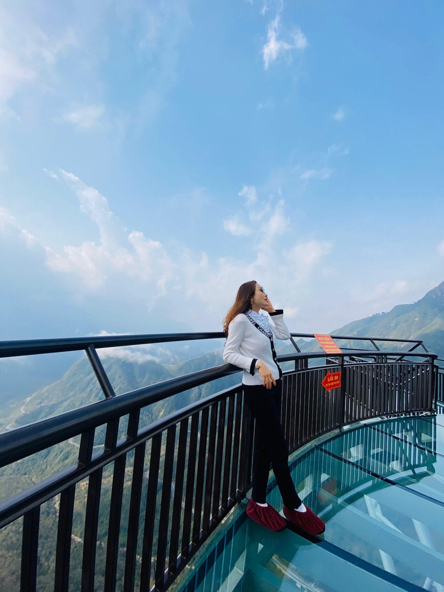 Du khách sẽ mất khoảng 10 phút để di chuyển từ chân núi tới đỉnh núi bằng thang máy lồng kính. Ngay khi bước chân ra khỏi thang máy, du khách sẽ bắt gặp cầu kính trong suốt vươn ra khỏi vách núi 60m. Đây là một nơi mà bạn có thể cảm nhận trọn vẹn những con đường đèo uốn lượn, ruộng bậc thang, núi rừng trùng điệp, vốn là đặc trưng của vùng Tây Bắc với “xương sống” là dải núi Hoàng Liên Sơn - nóc nhà Đông Nam Á.