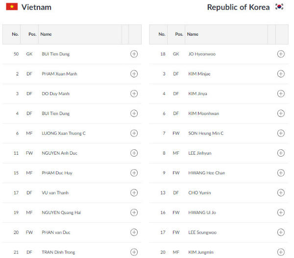 O. Hàn Quốc: Jo Hyeon-woo, Kim Min-jae, Kim Jin-ya, Kim Moon-hwan, Son Heung-min, Lee Jin-hyun, Hwang Hee Chan, Cho Yu-min, Hwang Ui-jo, Lee Seungwoo, Kim Jung-min.