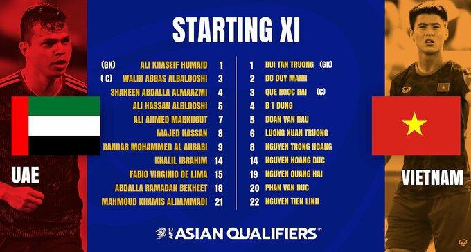 22' Quang Hải có pha mất bóng nguy hiểm. Cầu thủ UAE có bóng trong vòng cấm, rất may Trọng Hoàng kịp thời lùi về bọc lót, giải nguy.