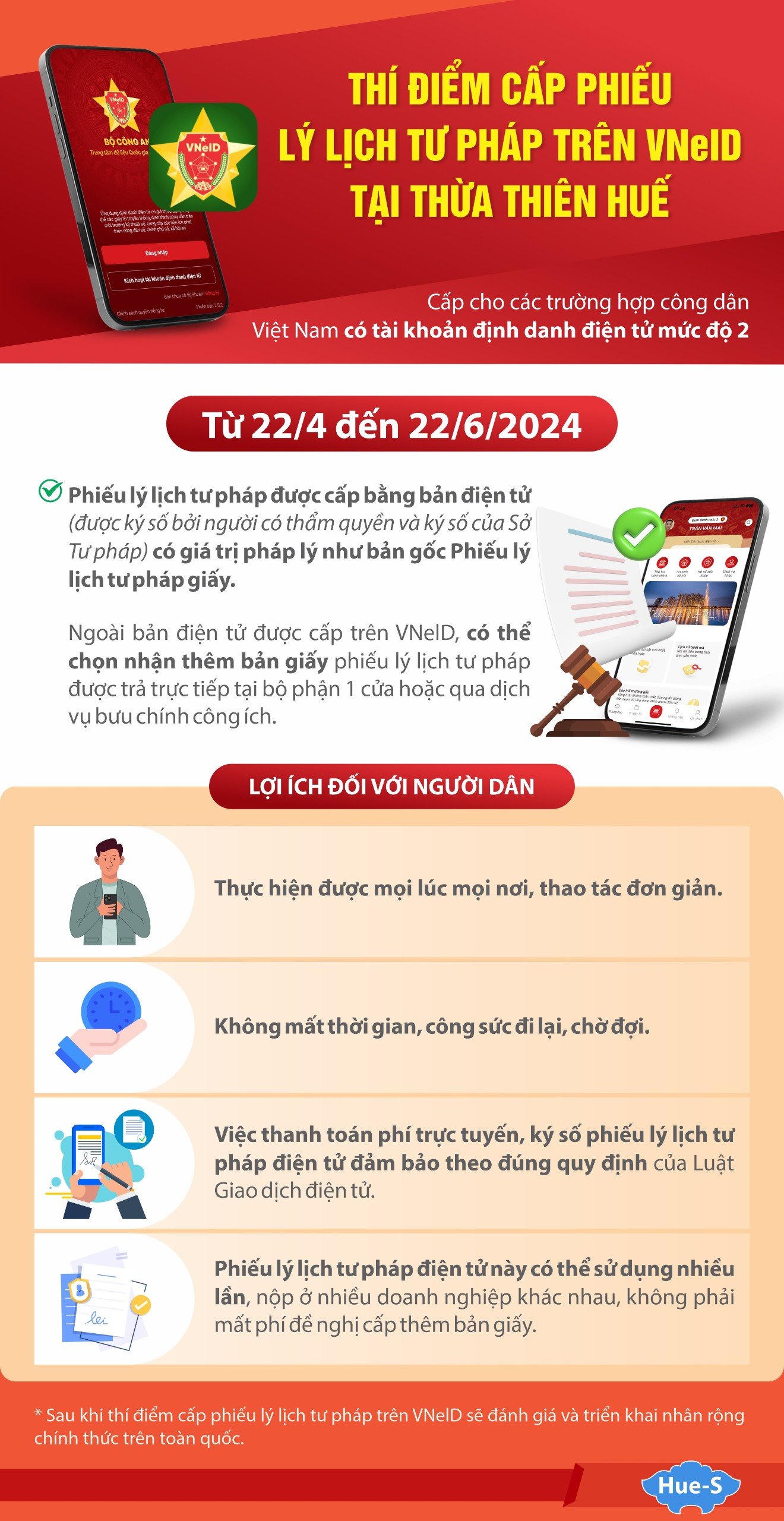 Thừa Thiên Huế: 97,47% người dân nộp thành công thủ tục cấp Phiếu lý lịch tư pháp qua VNeID