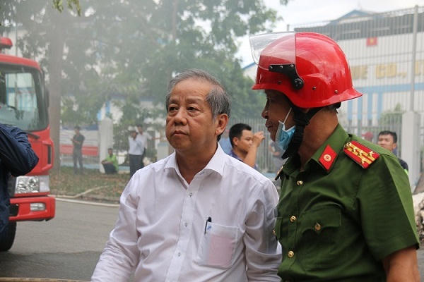 Hai chiếc xe cẩu cũng được huy động ủi sập tường để lực lượng chức năng dễ dàng tiếp cận bên trong khu nhà xưởng. Tuy nhiên, do vật liệu bông dễ bắt lửa nên công tác chữa cháy gặp rất nhiều khó khăn.