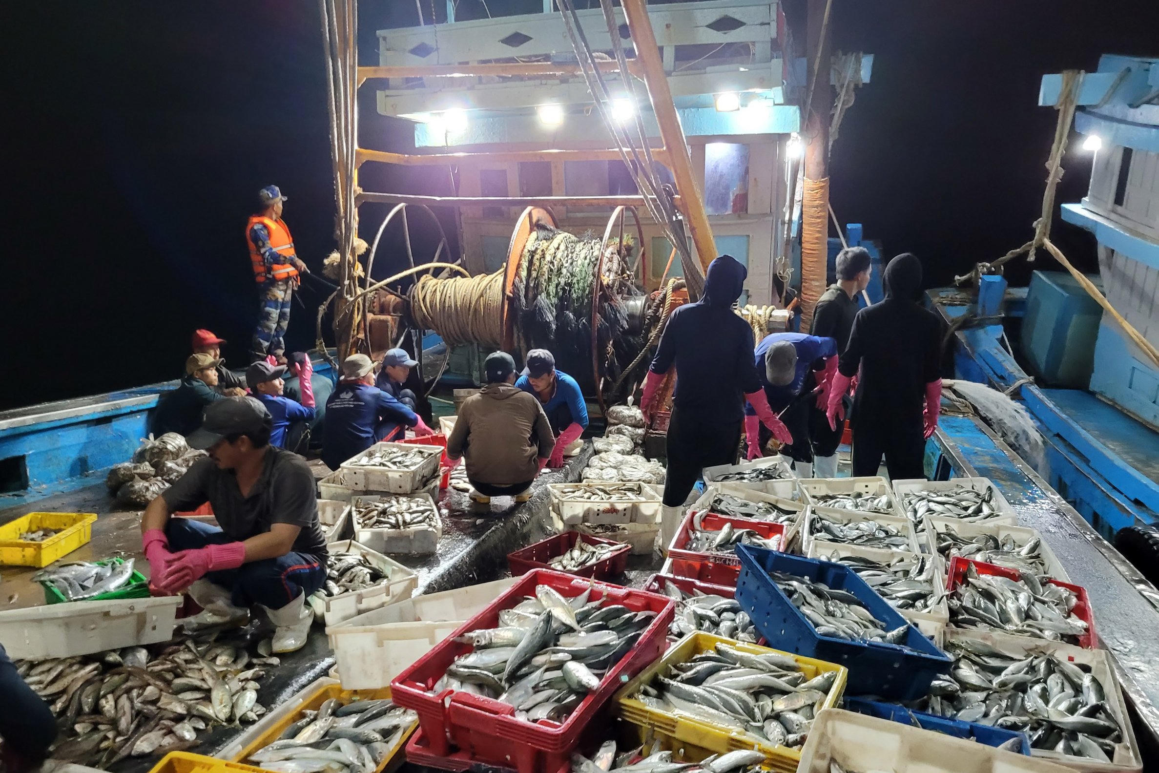 Khai thác hải sản kiểu tận diệt của tàu giã cào làm ngư trường ngày càng cạn kiệt thủy sản. |