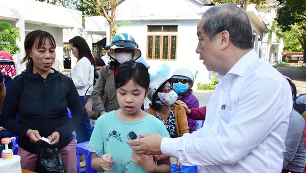 Đồng thời, Chủ tịch UBND tỉnh vận động doanh nghiệp hỗ trợ cho nhà trường 500 chai đựng dung dịnh, với mong muốn sẽ có thêm nhiều người dân được nhận dung dịch miễn phí và hành động đẹp này tiếp tục được lan tỏa.