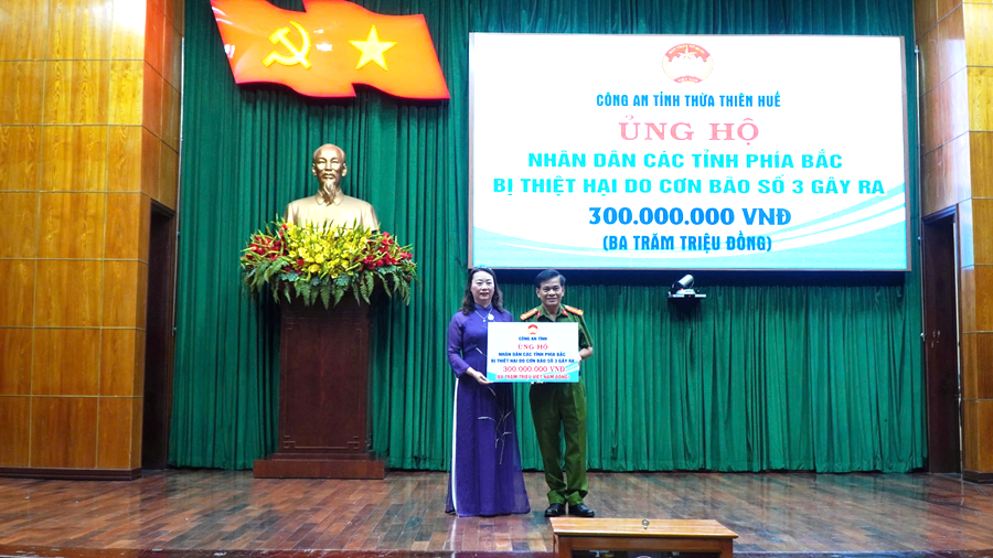 Công an Thừa Thiên Huế ủng hộ nhân dân các tỉnh phía Bắc khắc phục thiệt hại do bão số 3 gây ra |