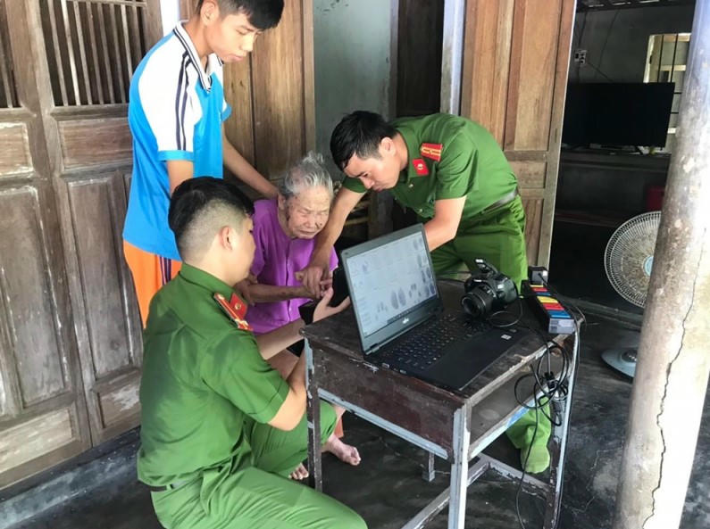Lực lượng Công an Thừa Thiên Huế đến tận nhà làm thủ tục cấp CCCD cho người già. |