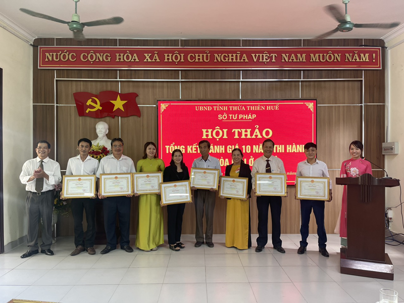 Dịp này đã có 15 tập thể và 19 cá nhân được nhận Bằng khen của Chủ tịch UBND tỉnh Thừa Thiên Huế vì đã có thành tích xuất sắc trong 10 năm thi hành Luật Hòa giải ở cơ sở. |