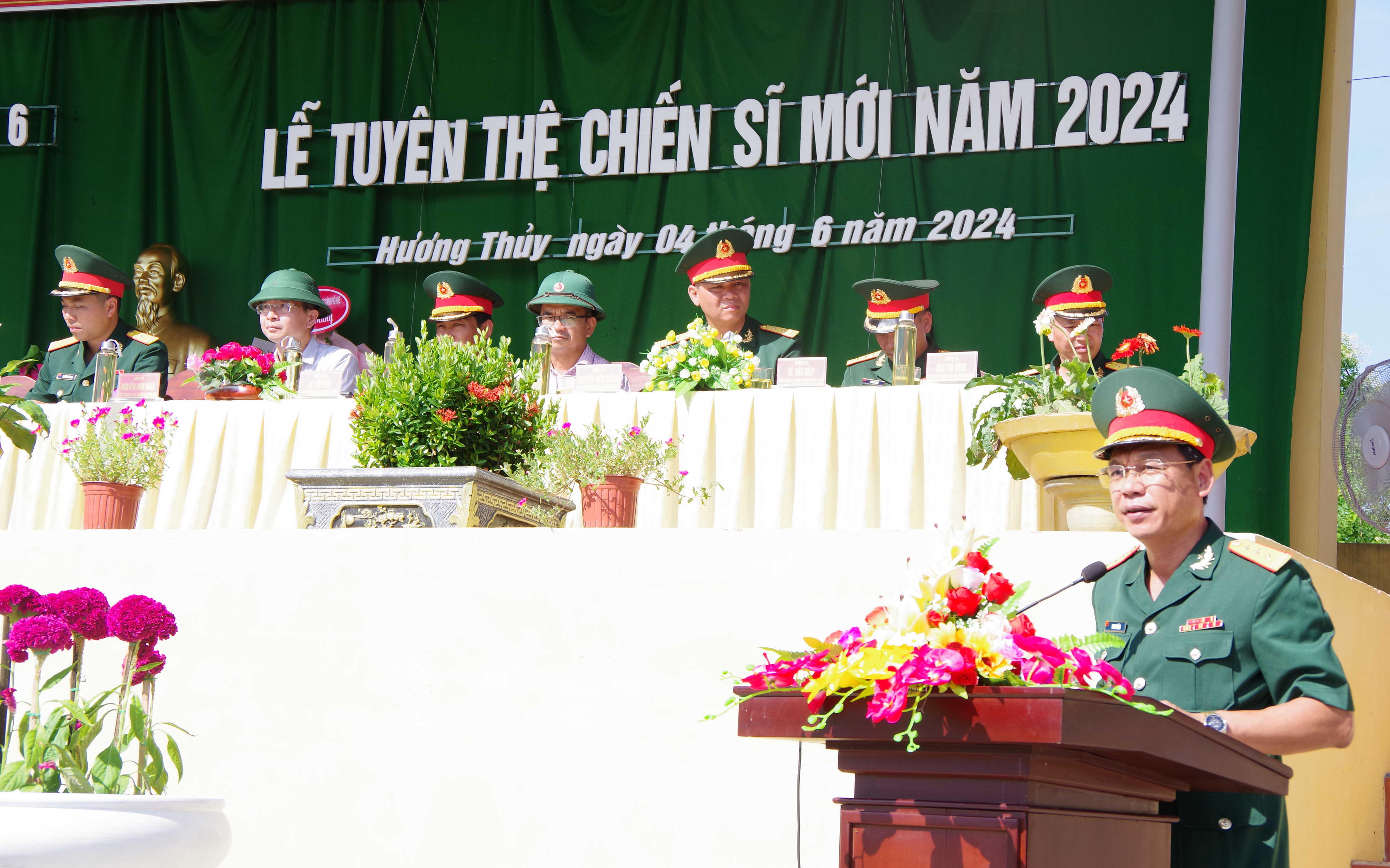Phát biểu tại buổi lễ, Thượng tá Phan Thắng - Chỉ huy trưởng Bộ Chỉ huy Quân sự tỉnh biểu dương sự nỗ lực cố gắng của toàn thể cán bộ, chiến sĩ Trung đoàn 6 và các chiến sĩ mới đã hoàn thành tốt các nội dung, chương trình huấn luyện, đặc biệt là hoàn thành xuất sắc nội dung kiểm tra 3 tiếng nổ bảo đảm an toàn tuyệt đối.