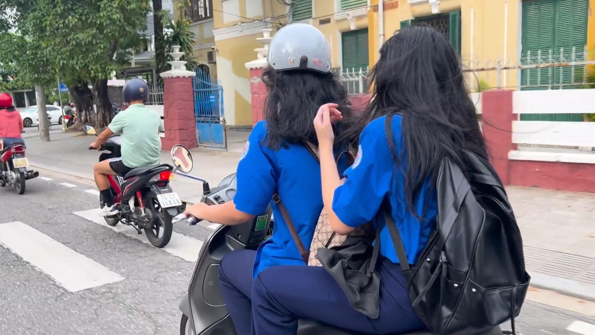 Ra khỏi cổng trường, các em điều khiển xe máy thường không đội mũ bảo hiểm, tụ tập đi hàng hai, hàng ba, lạng lách đánh võng trên đường, tiềm ẩn nguy cơ rất cao gây tai nạn giao thông. Thực trạng này rất đáng lo ngại, là một trong những nguyên nhân chủ yếu khiến TNGT trong học sinh tăng cao.