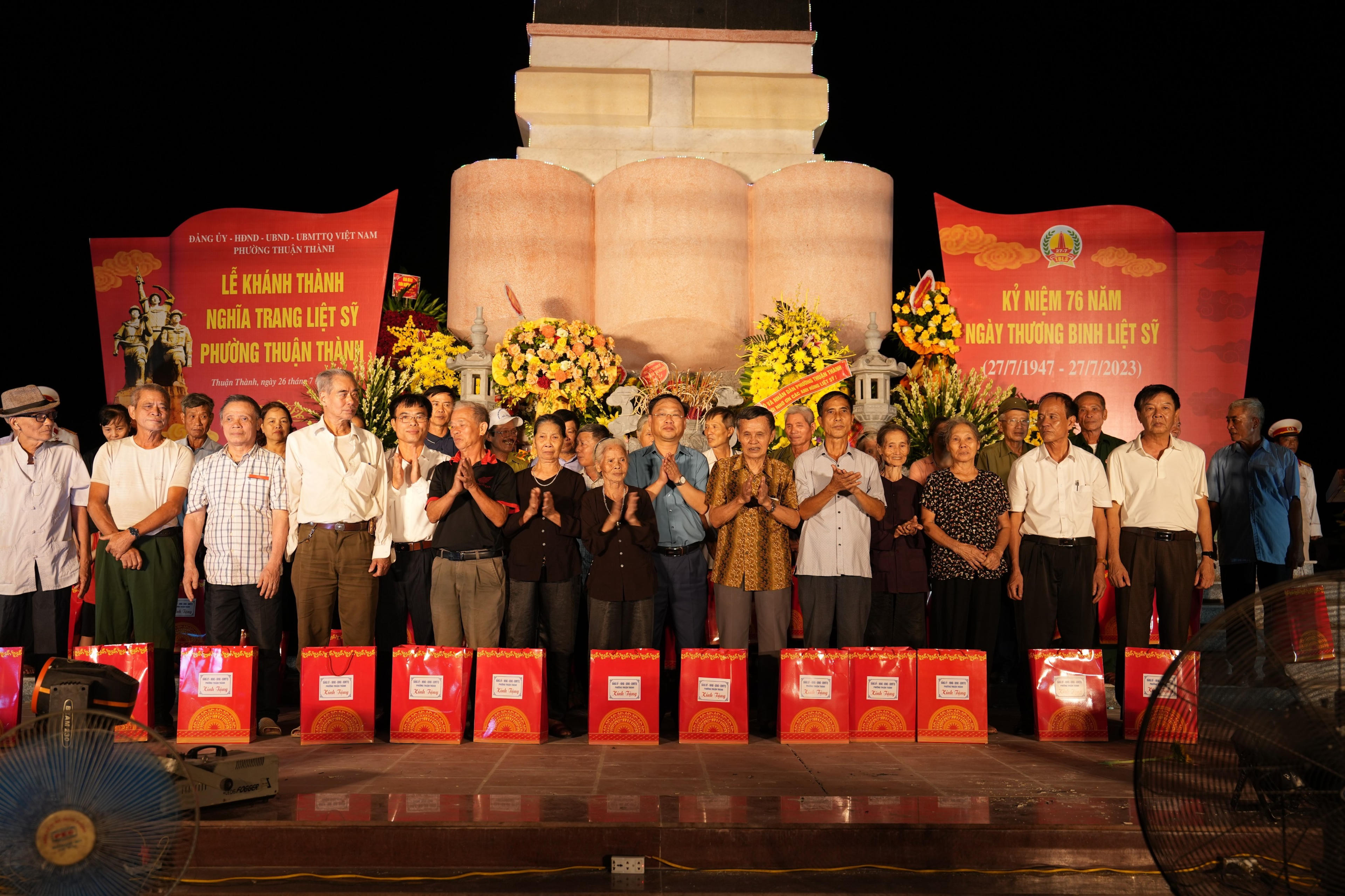 Cũng tại buổi lễ khánh thành nghĩa trang và kỷ niệm 76 năm ngày Thương binh liệt sỹ, phường đã trao tặng 76 suất quà cho 54 gia đình liệt sĩ và 21 đối tượng là thương binh, bệnh binh với trị giá 400.000đ/1 suất quà.