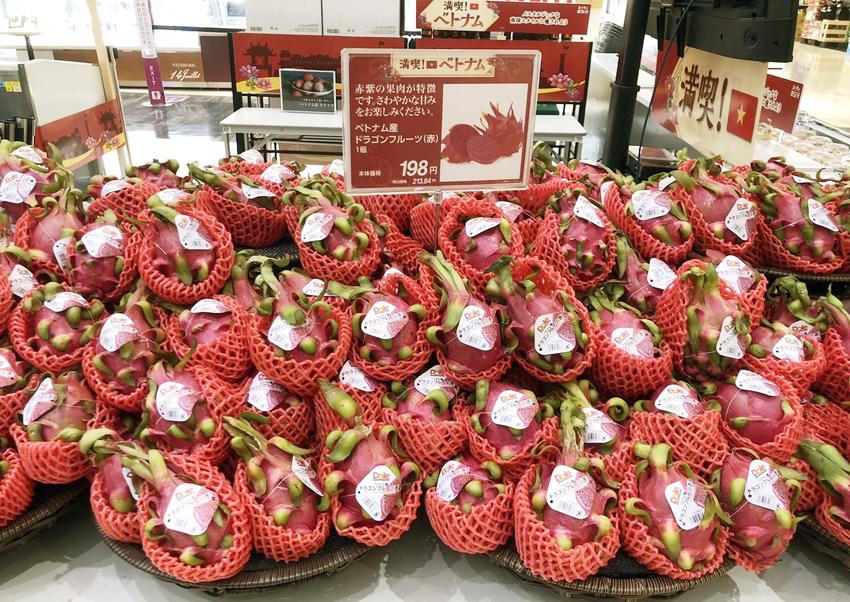 Trái Thanh long Việt Nam trên kệ siêu thị Nhật. |
