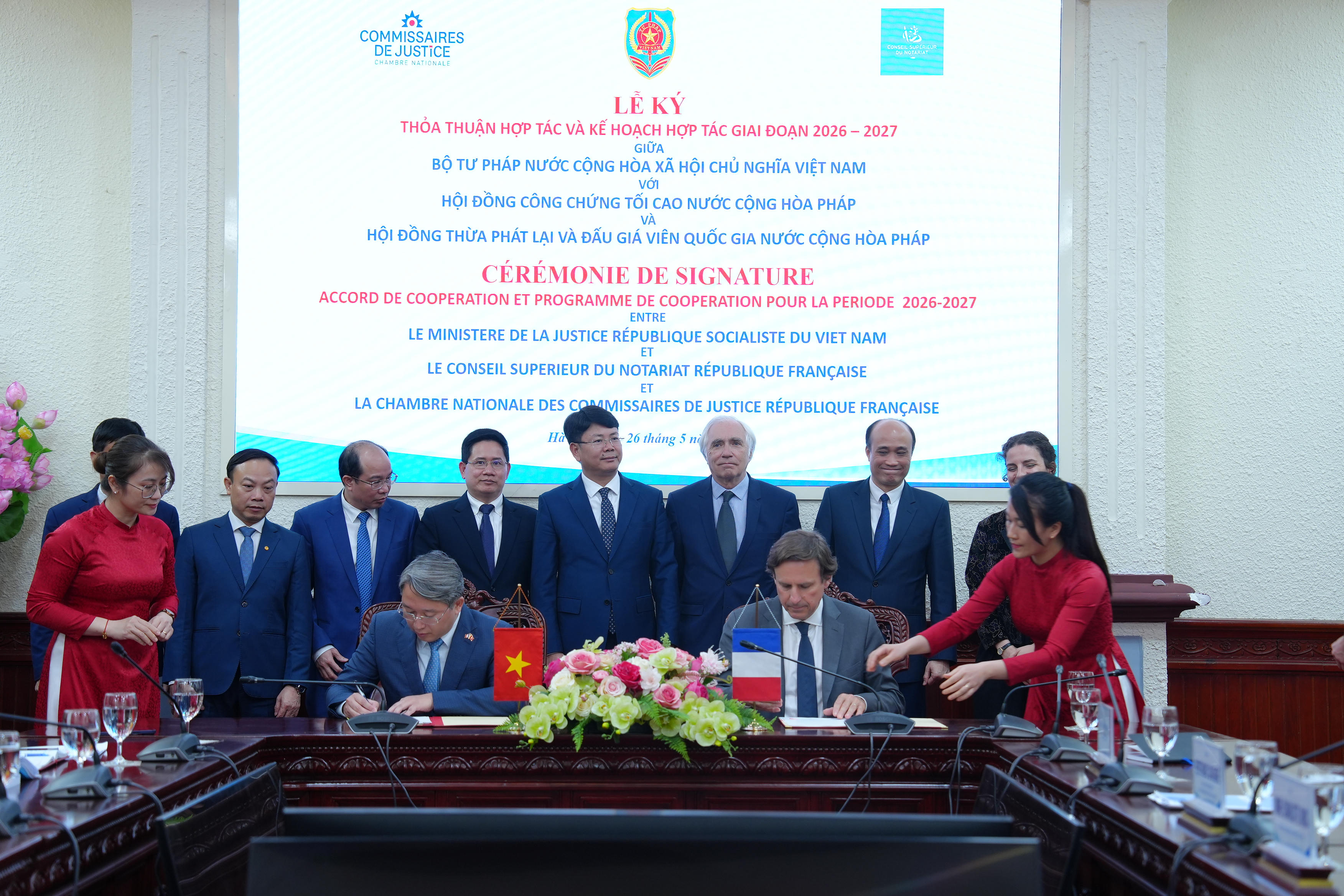 Bộ Tư pháp đã ký Bản ghi nhớ hợp tác giữa Bộ Tư pháp và Hội đồng Công chứng tối cao ngày 27/3/2008 và Thỏa thuận hợp tác giữa Bộ Tư pháp Việt Nam và Hội đồng Thừa phát lại Quốc gia Pháp vào ngày 21/4/2015. Trên cơ sở đó, các Bên đã ký và triển khai Chương trình hợp tác hàng năm. Các hoạt động hợp tác được thực hiện linh hoạt dưới nhiều hình thức khác nhau, như: trao đổi thông tin; trao đổi các đoàn công tác; tổ chức tọa đàm, hội thảo; tổ chức tập huấn.