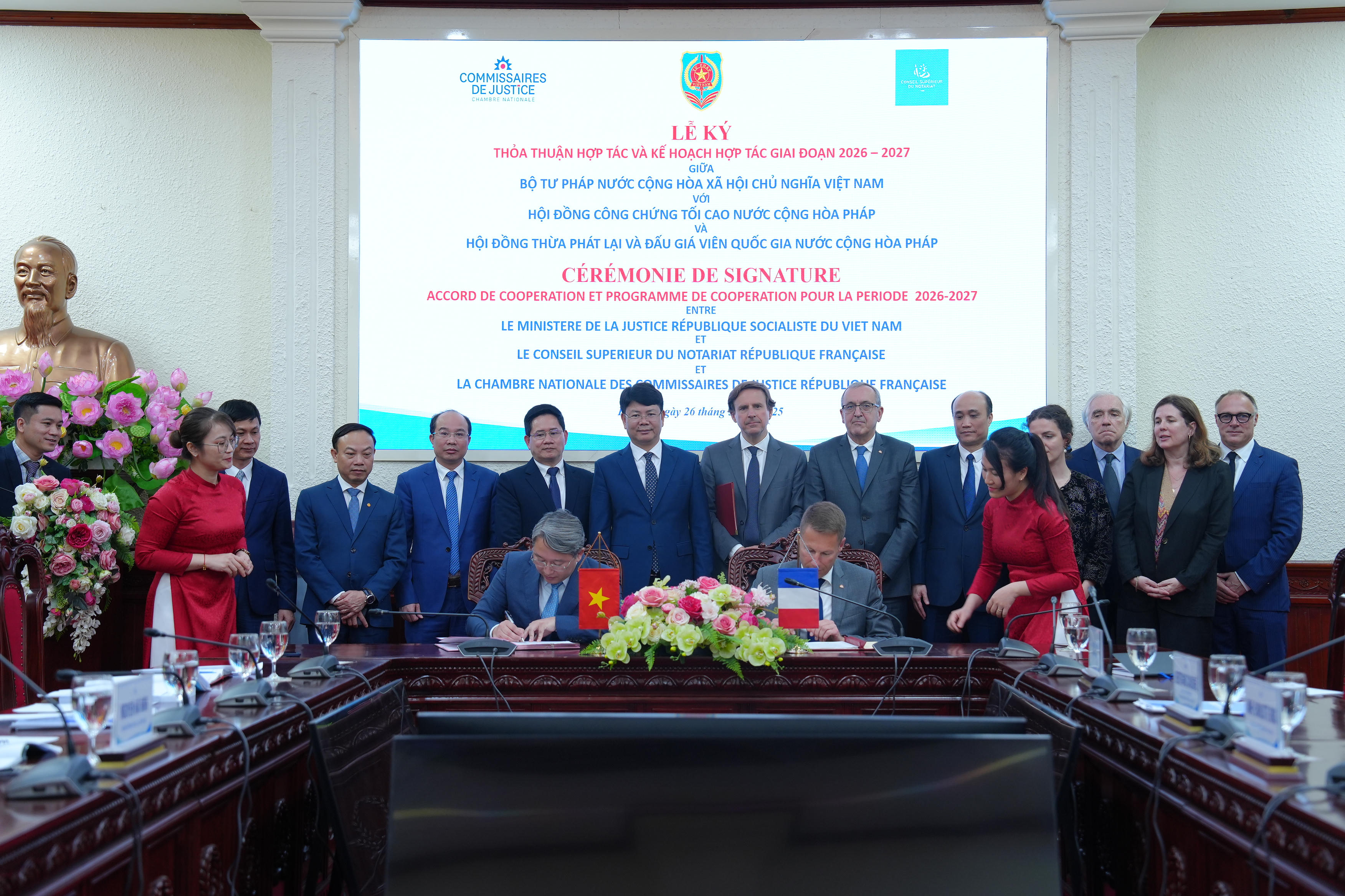 Sau buổi tiếp đã diễn ra Lễ ký Thỏa thuận hợp tác giữa Bộ Tư pháp nước CHXHCN Việt Nam với Hội đồng Công chứng tối cao Pháp và Kế hoạch hợp tác giai đoạn 2026-2027 giữa Bộ Tư pháp nước CHXHCN Việt Nam với Hội đồng Thừa phát lại và đấu giá viên quốc gia Pháp.